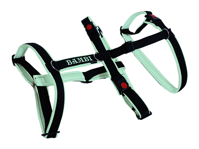 personalisiertes, mehrfach verstellbares Führgeschirr mit einem zusätzlichen abnehmbaren Sicherheitsgurt